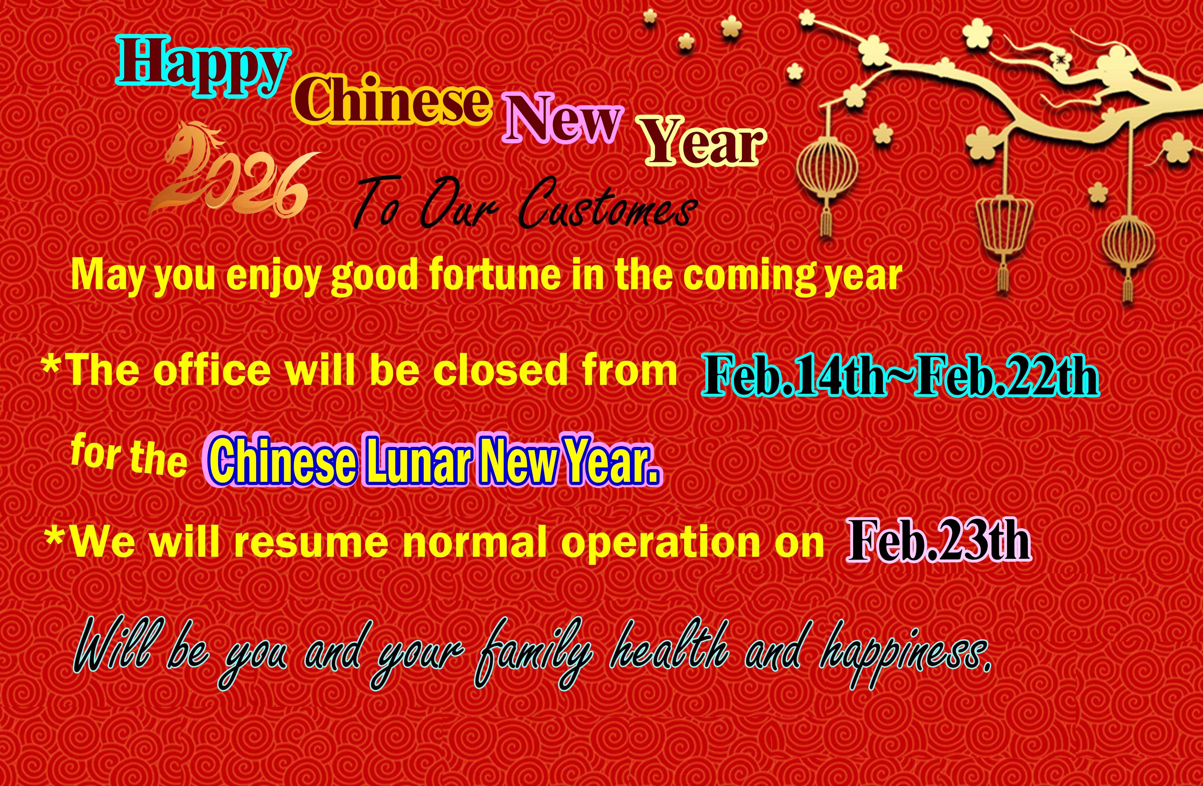 Notice for Chinese Lunar New Year in 2026